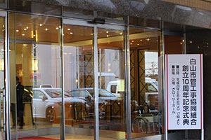 平成17年2月、一市二町五村の合併により、白山市が誕生。それに伴い松任市、鶴来町、美川町管工事協同組合が統合され、白山市管工事協同組合が設立されました。以来10年を経過し、本年10周年を迎える事ができ、平成28年2月2日、グランドホテル白山にて、設立10周年記念の式典を催す事ができました。
