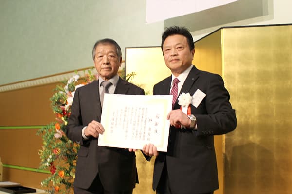現理事長の式辞に続き、前理事長へ感謝状を贈呈しました。